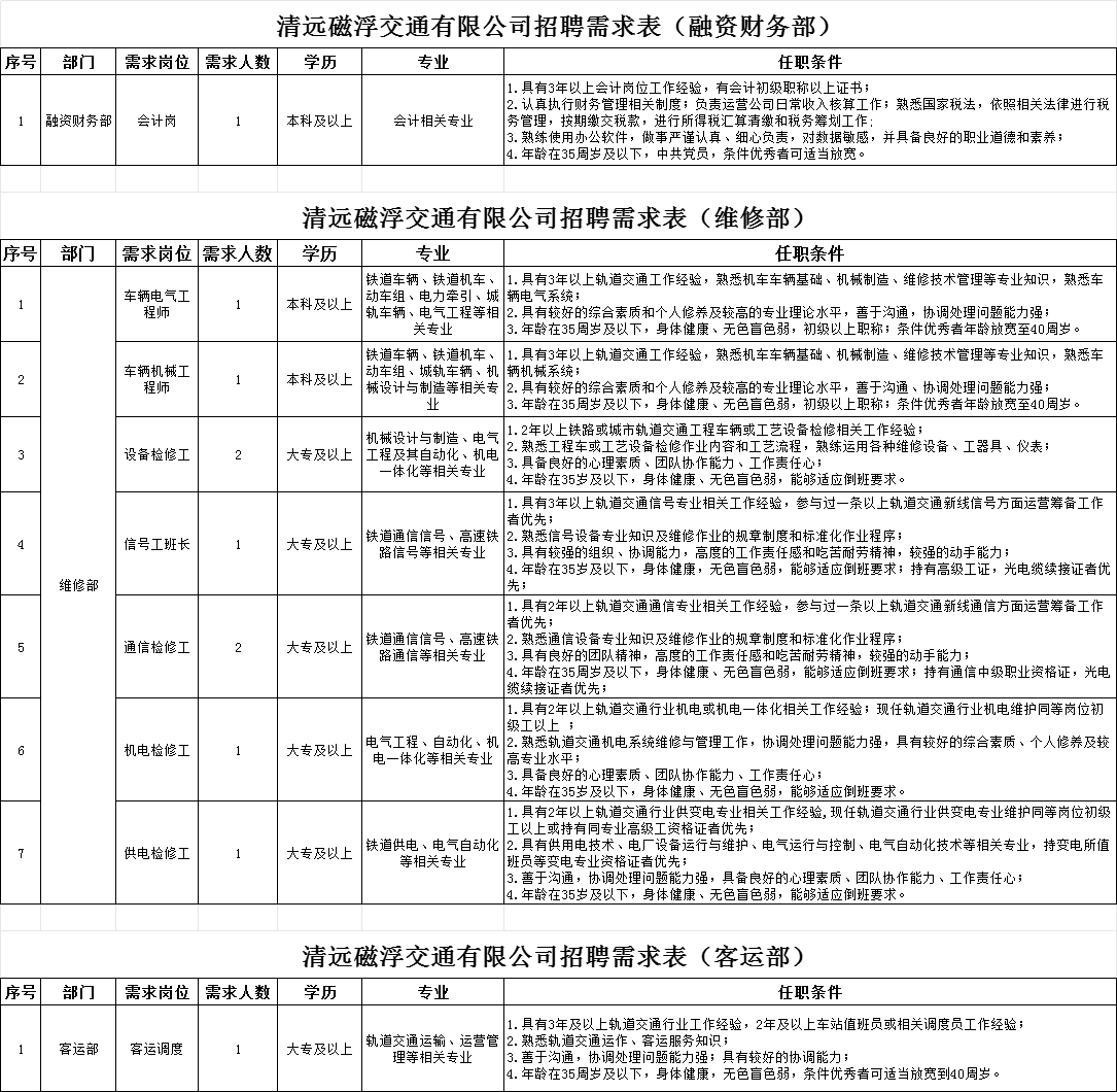 國企招聘!清遠(yuǎn)磁浮交通有限公司2023年招聘公告