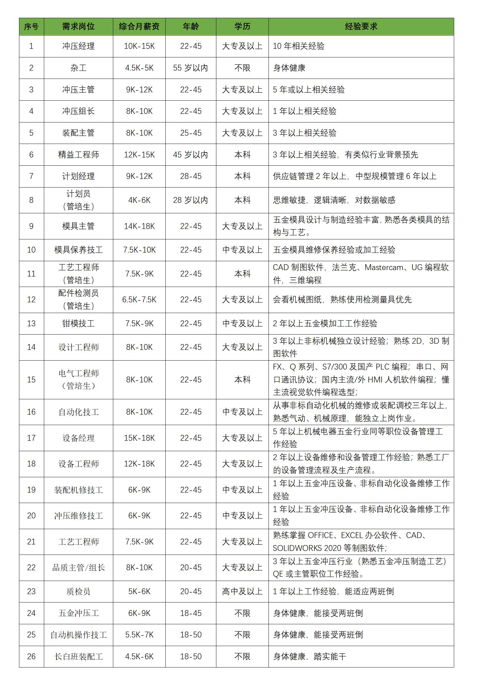 清遠(yuǎn)市星徽精密制造有限公司位于清遠(yuǎn)市龍?zhí)伶?zhèn)銀盞嘉福工業(yè)園。總部是佛山順德北滘的廣東星徽精密制造股份有限公司,股票代碼 300464。公司以鋼珠滑軌、鉸鏈等家居五金配件為主導(dǎo)產(chǎn)品,生產(chǎn)的精密金屬連接件廣泛應(yīng)用于多個領(lǐng)域。作為家居五金行業(yè)首家上市公司及滑軌、鉸鏈行業(yè)領(lǐng)導(dǎo)者,為員工提供發(fā)揮平臺和廣闊發(fā)展空間。因業(yè)務(wù)發(fā)展需要,現(xiàn)誠聘以下人員。