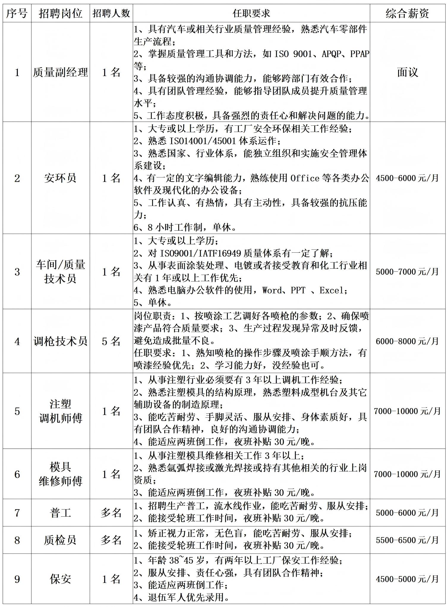 清遠(yuǎn)市金鐘汽車零部件有限公司誠聘