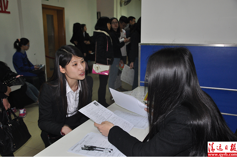 求職人員大多是應屆畢業(yè)生以及即將畢業(yè)在讀生,如清遠職業(yè)技術學院等職校則專門組織學生來求職。在讀大二的清職院學生小陳希望找到實習工作,她應聘的是某公司董事長助理,經過一輪面試后,招聘人員告訴她目前暫不適合溝通傳達類工作,建議應聘行政文員類,最終她聽取了建議。